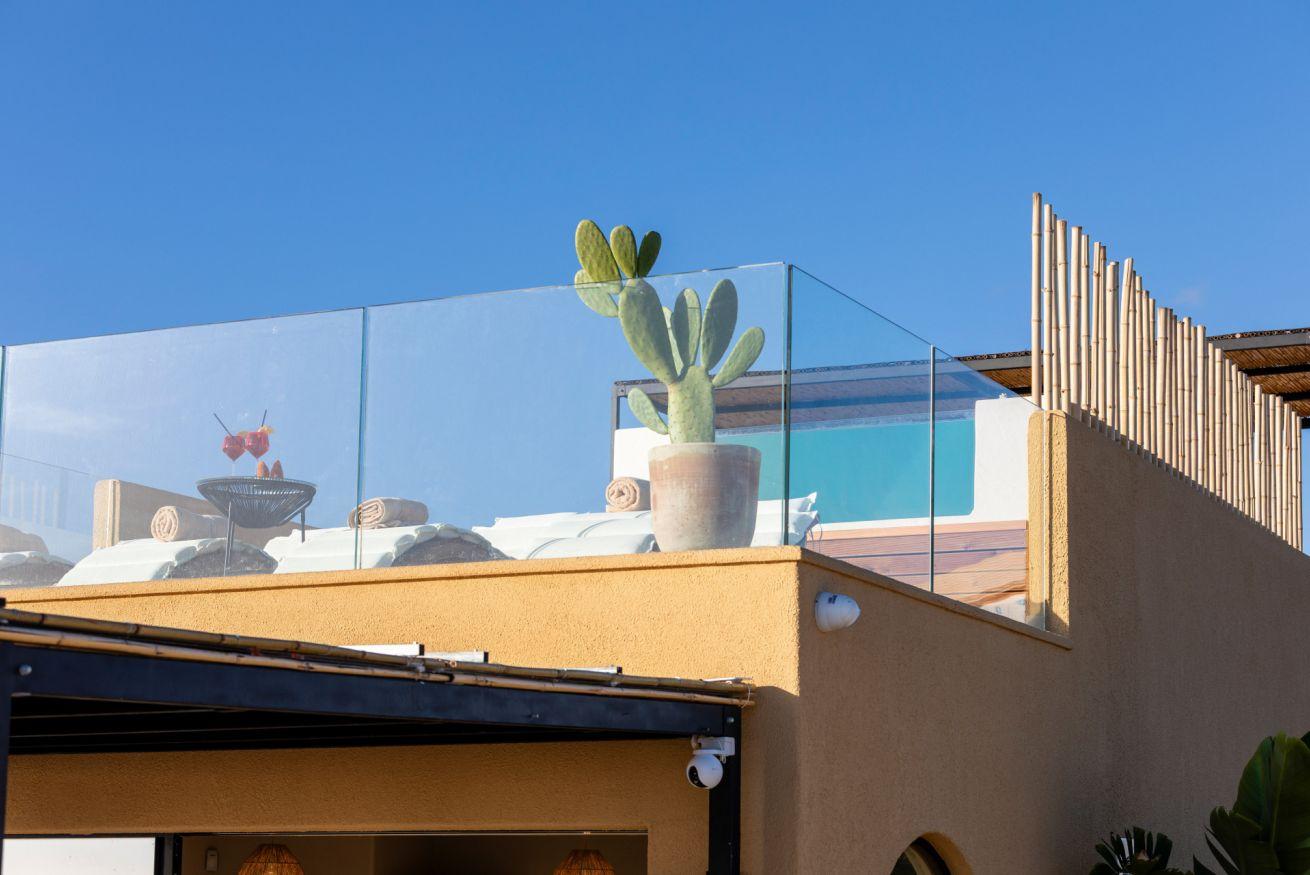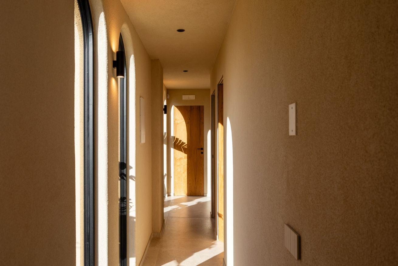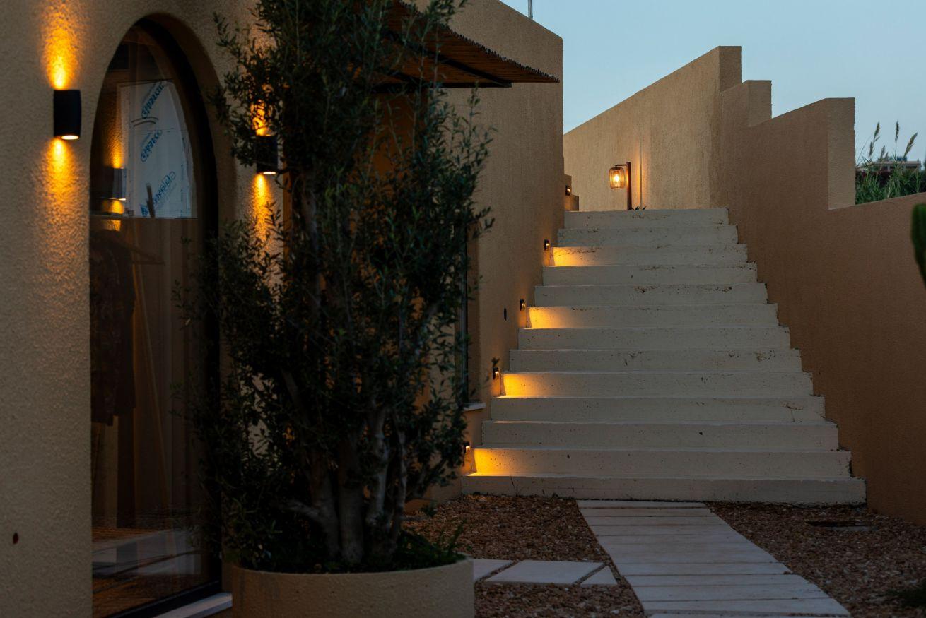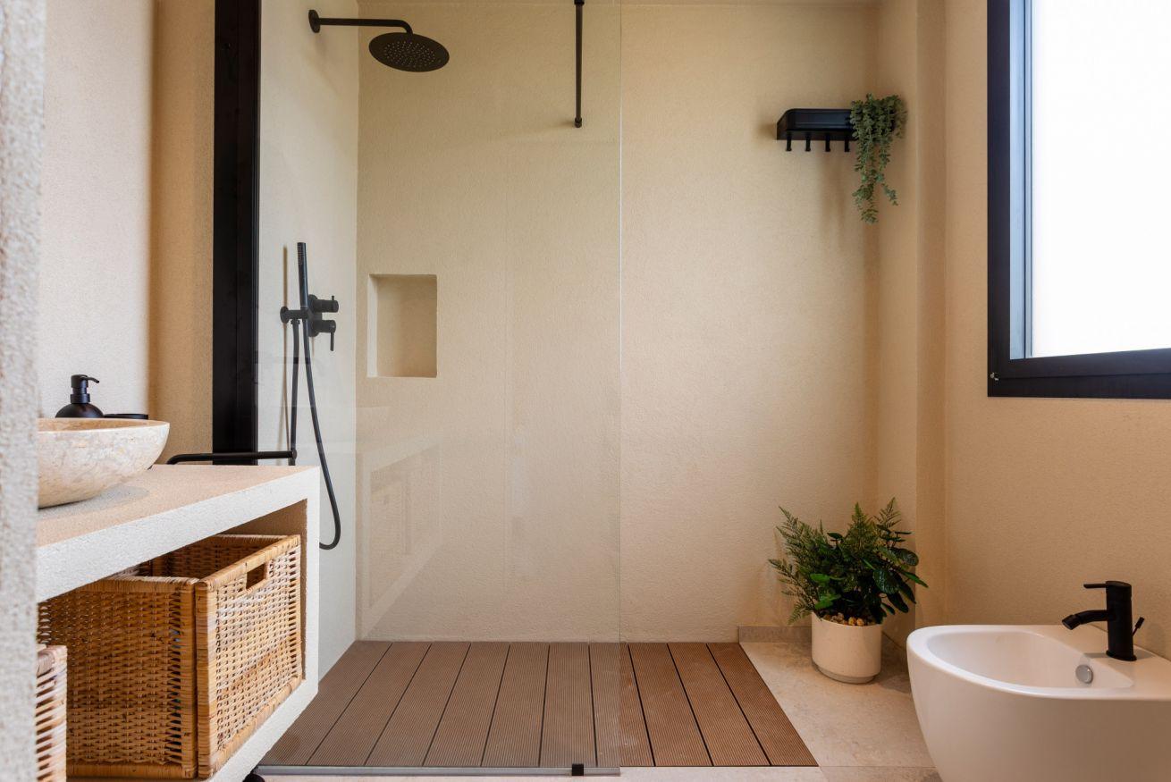 Inside, the villa is tastefully decorated with neutral colors, wood and rattan details, creating a warm and relaxing Mediterranean atmosphere.